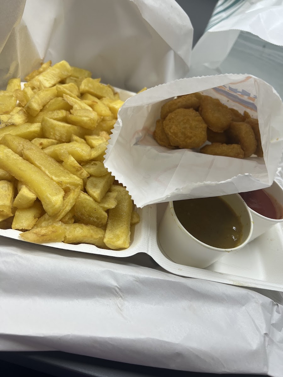 At Hooked, the aroma of freshly fried fish fills the air, enticing your senses even before you step through the door. The menu boasts a variety of fish options, with the star of the show being the crispy Cod at just £6.55. For those looking to explore, the Haddock and Plaice provide equally tantalizing choices, all cooked to perfection with a light, crispy batter that customers rave about. The Cod Bites and Wholetail Scampi are fantastic as well, offering a bite-sized taste of the sea that pairs superbly with their renowned Salt & Chilli Chips or even a Cheesy Chips option if you're feeling indulgent.